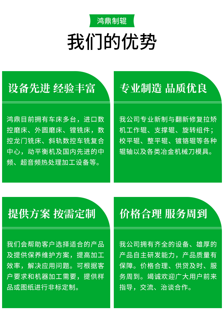 鴻鼎機(jī)械提供的各系列支撐輥,廣泛應(yīng)用于拉矯機(jī)、破鱗機(jī)上,可以滿足各種環(huán)境下的使用要求,我公司研制的高速支撐輥,裝配精度高、承載能力強(qiáng)、啟動轉(zhuǎn)矩小安裝方便快捷、使用壽命長,目前已經(jīng)成功運(yùn)用在500m/min的拉矯機(jī)上。
